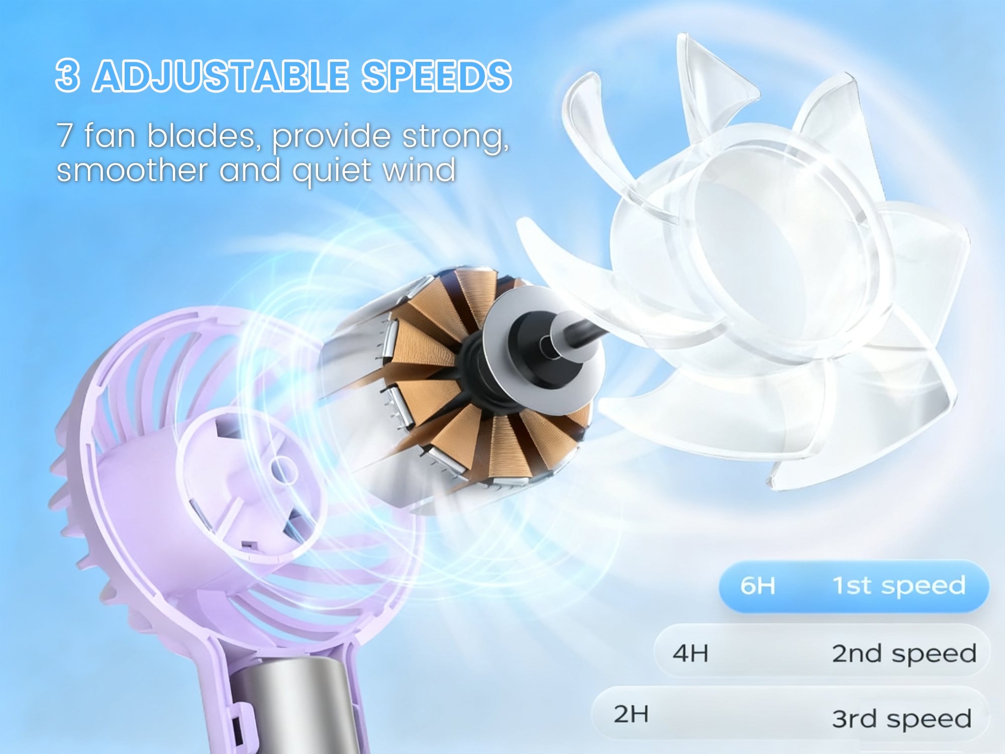 Potencia compacta con libertad recargable Como fabricante de ventiladores portátiles de confianza, MIJIDI integra motores eficientes y baterías de litio duraderas para ofrecer un uso recargable de larga duración. El ventilador ofrece múltiples velocidades para adaptarse a diferentes ambientes, desde una suave brisa en interiores hasta un flujo de aire intenso bajo el sol. Su puerto de carga USB-C permite una recarga rápida mediante ordenadores portátiles, baterías externas o adaptadores para coche, lo que lo hace ideal para un estilo de vida moderno y dinámico.