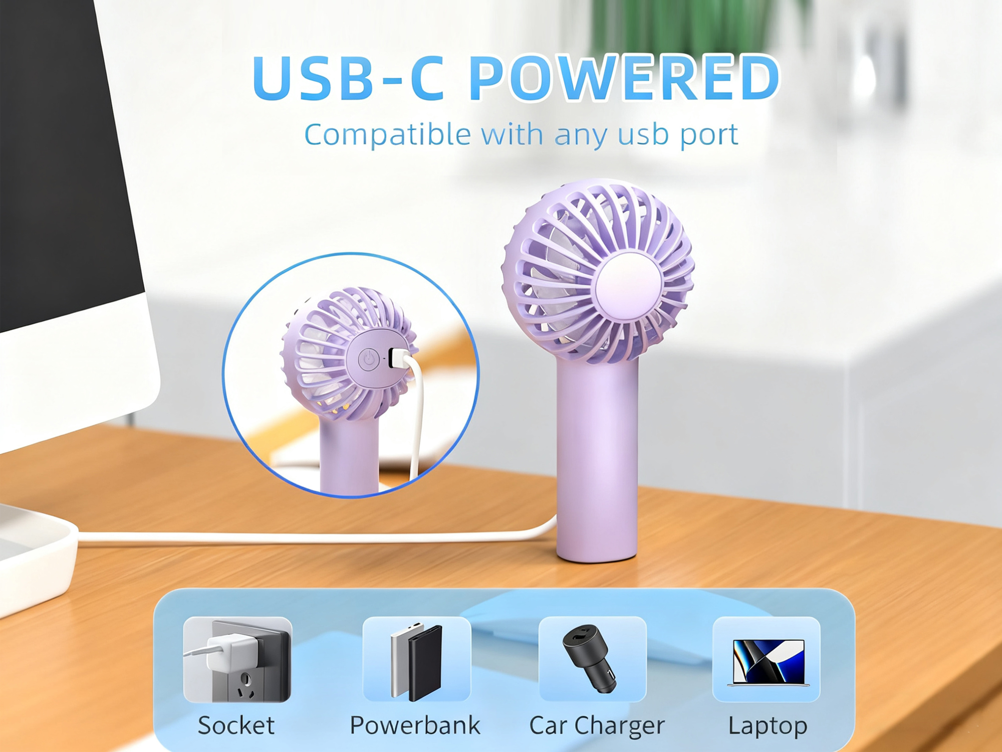 Comodidad diaria en el hogar y la oficina En casa o en la oficina, este mini ventilador portátil proporciona frescura personal sin ocupar mucho espacio. Su motor silencioso permite concentrarse en el trabajo o relajarse plácidamente, manteniendo una brisa constante. Las familias lo usan mientras cocinan, estudian o descansan, apreciando el equilibrio entre su diseño compacto y su eficaz flujo de aire para el confort diario.